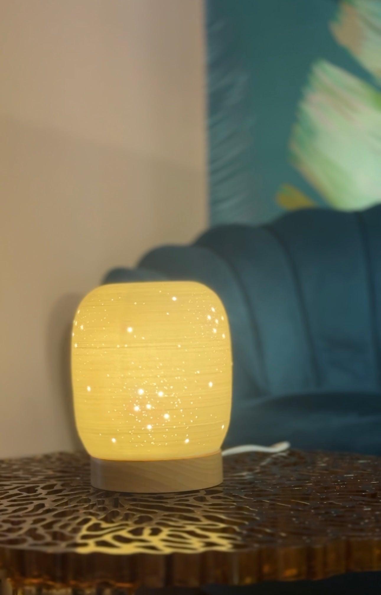 diffusore elettrico Astra è una graziosa lampada in ceramica lavorata a mano che, attraverso il calore emesso dalla lampadina in dotazione, collegandola alla presa di corrente, permette di diffondere nell’ambiente in modo pratico e sicuro oli essenziali puri senza l’utilizzo dell’acqua. Il meraviglioso cielo stellato inciso sulla superficie ci permette di viaggiare con la fantasia nei mondi più lontani, ricreando la bellezza e il benessere della natura che l’aromaterapia è in grado di dare e la rende una meravigliosa lampada da arredamento da posizionare in qualsiasi stanza della casa.